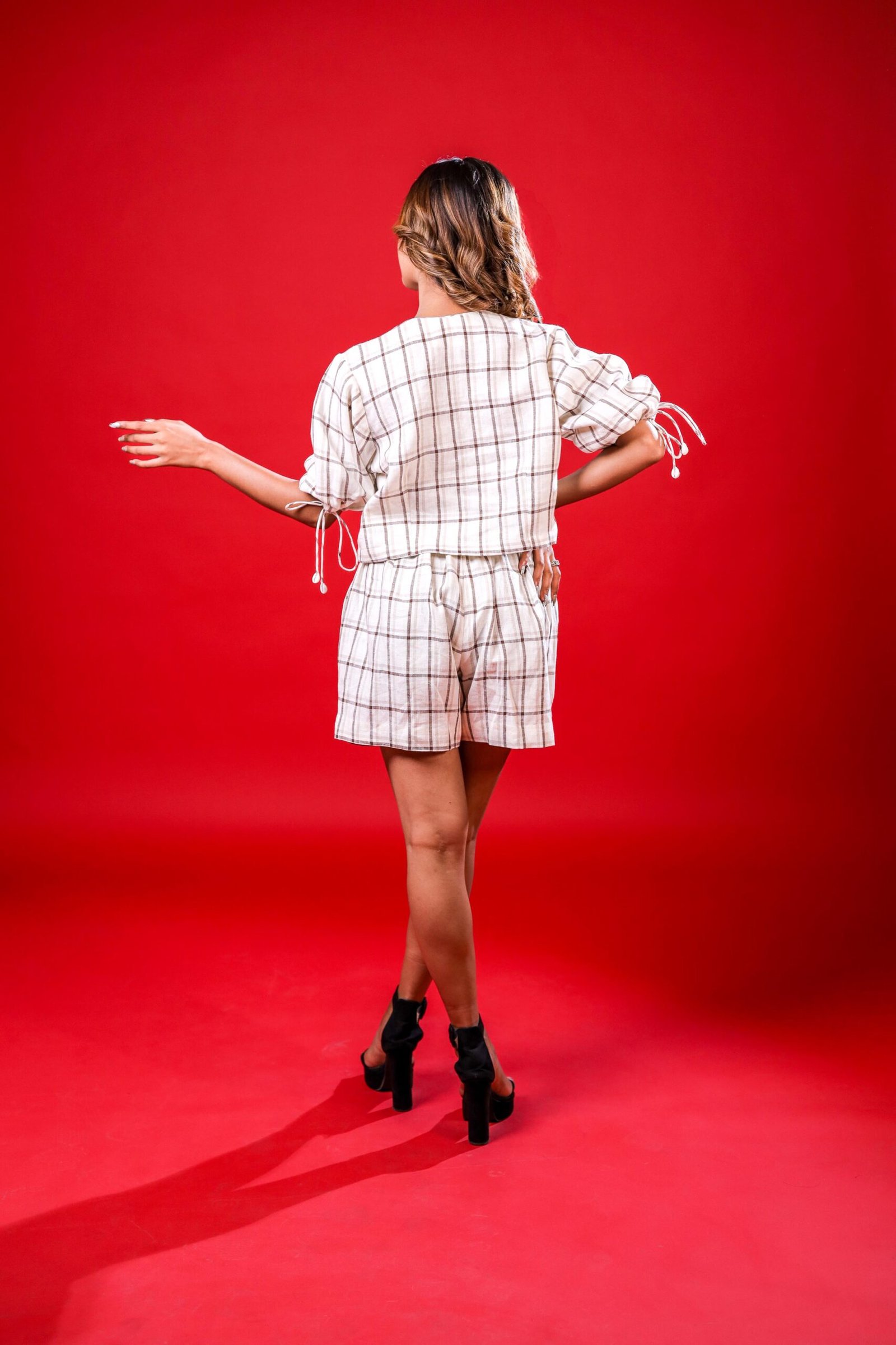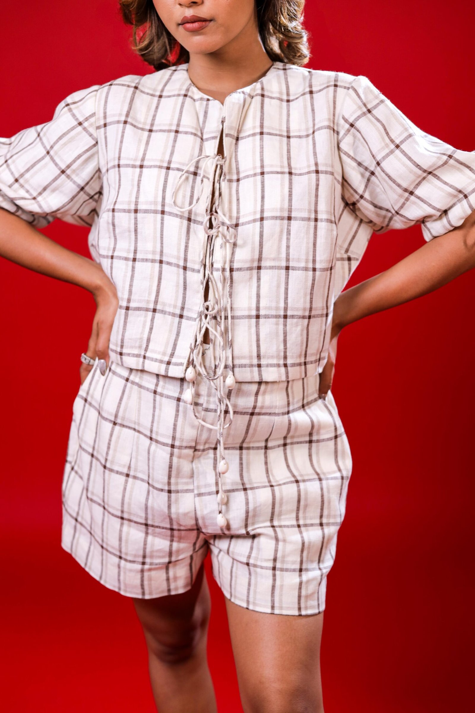 This co-ord set features a summer tasseled top paired with matching printed shorts—designed for this summer. Perfect for outings, breakfasts, and brunches. Simple yet balanced, it’s a ready-to-wear look that brings instant polish and personality.