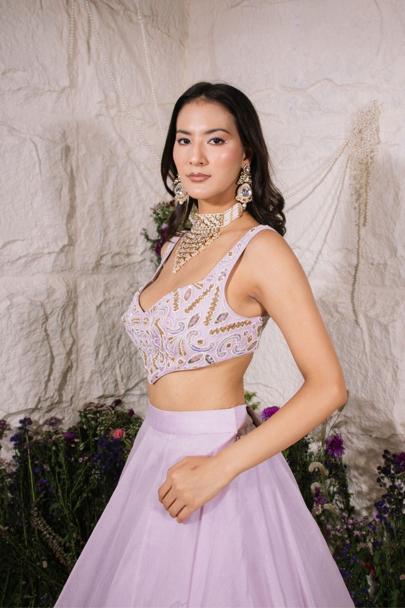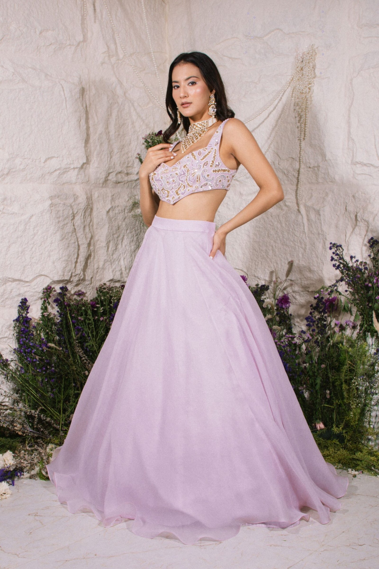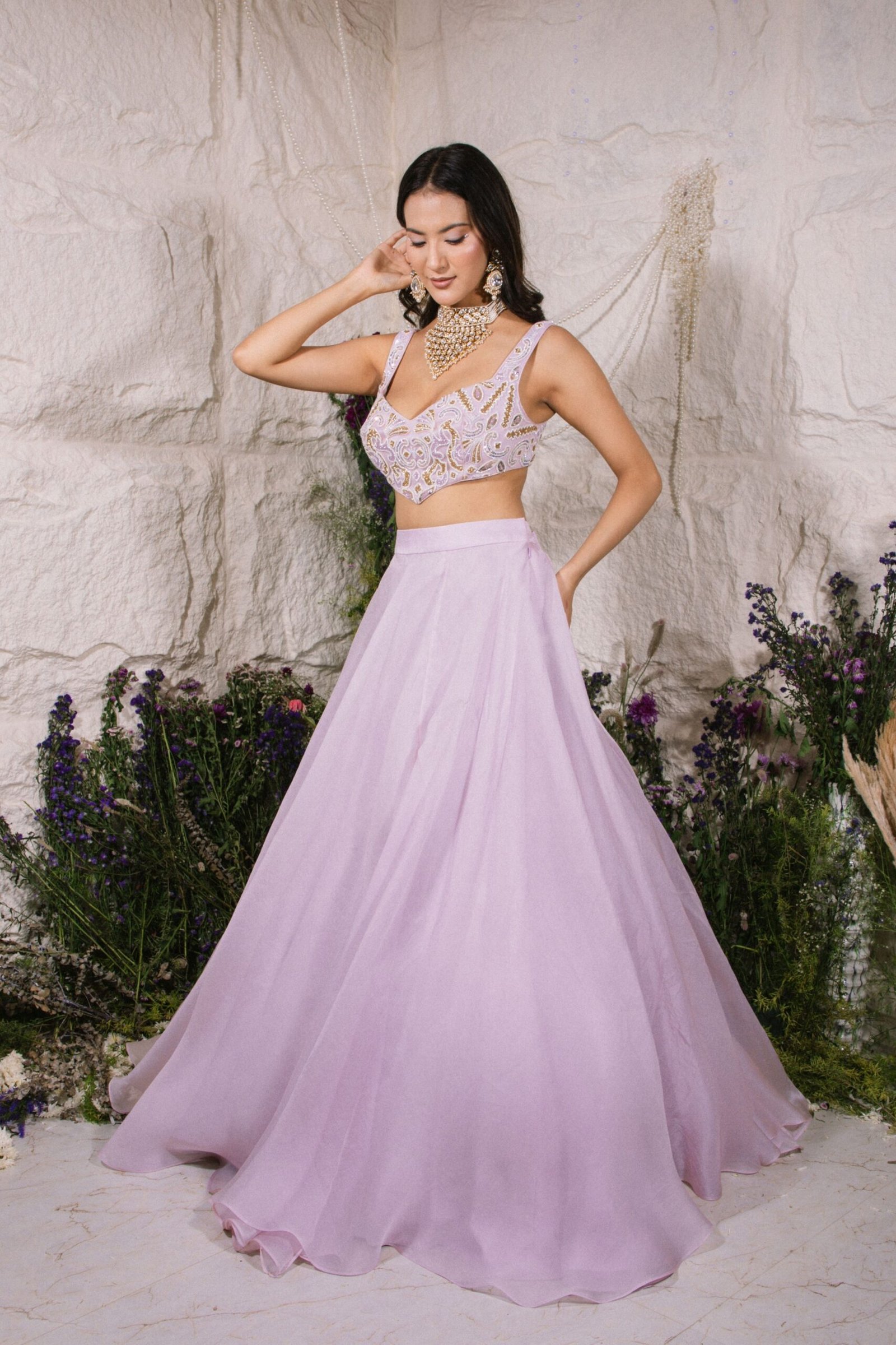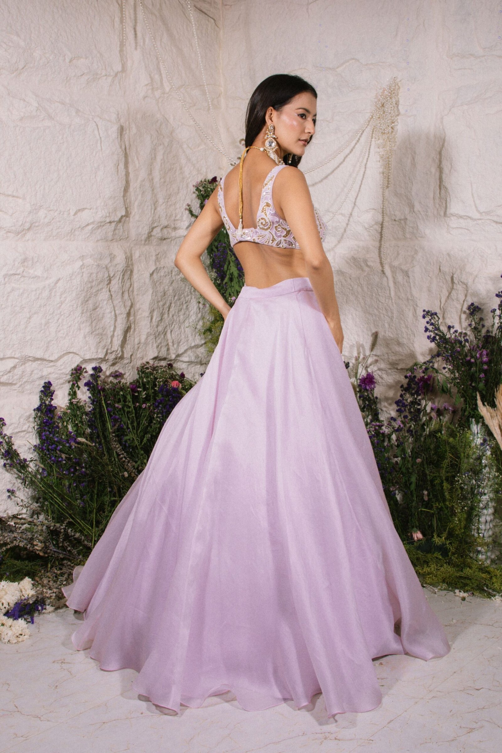Soft, romantic, and refined — this powder pink organza lehenga features delicate beaded hand embroidery and a dreamy silhouette. Lightweight yet luxurious, it’s crafted for celebrations that call for grace, charm, and a touch of modern romance.