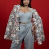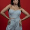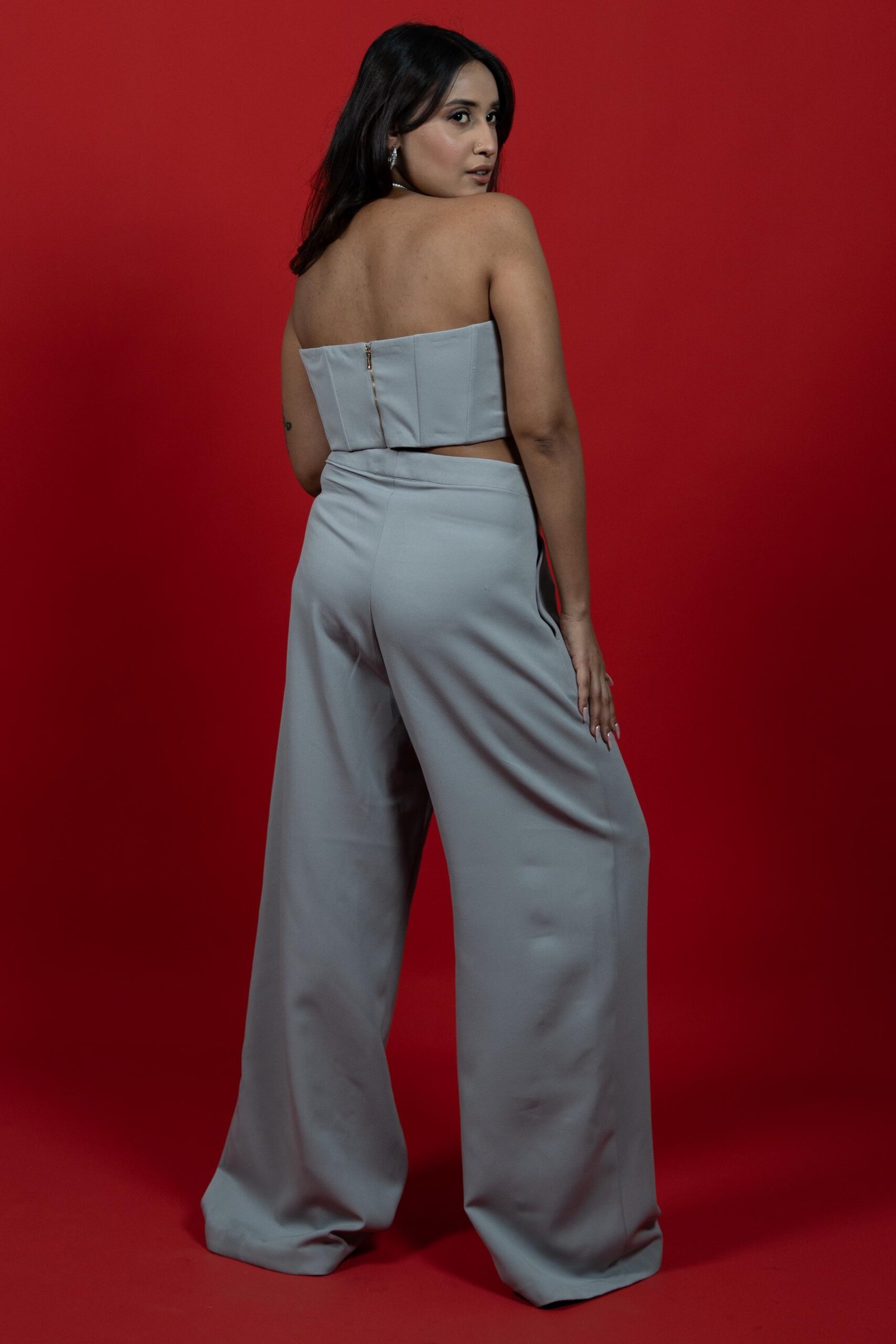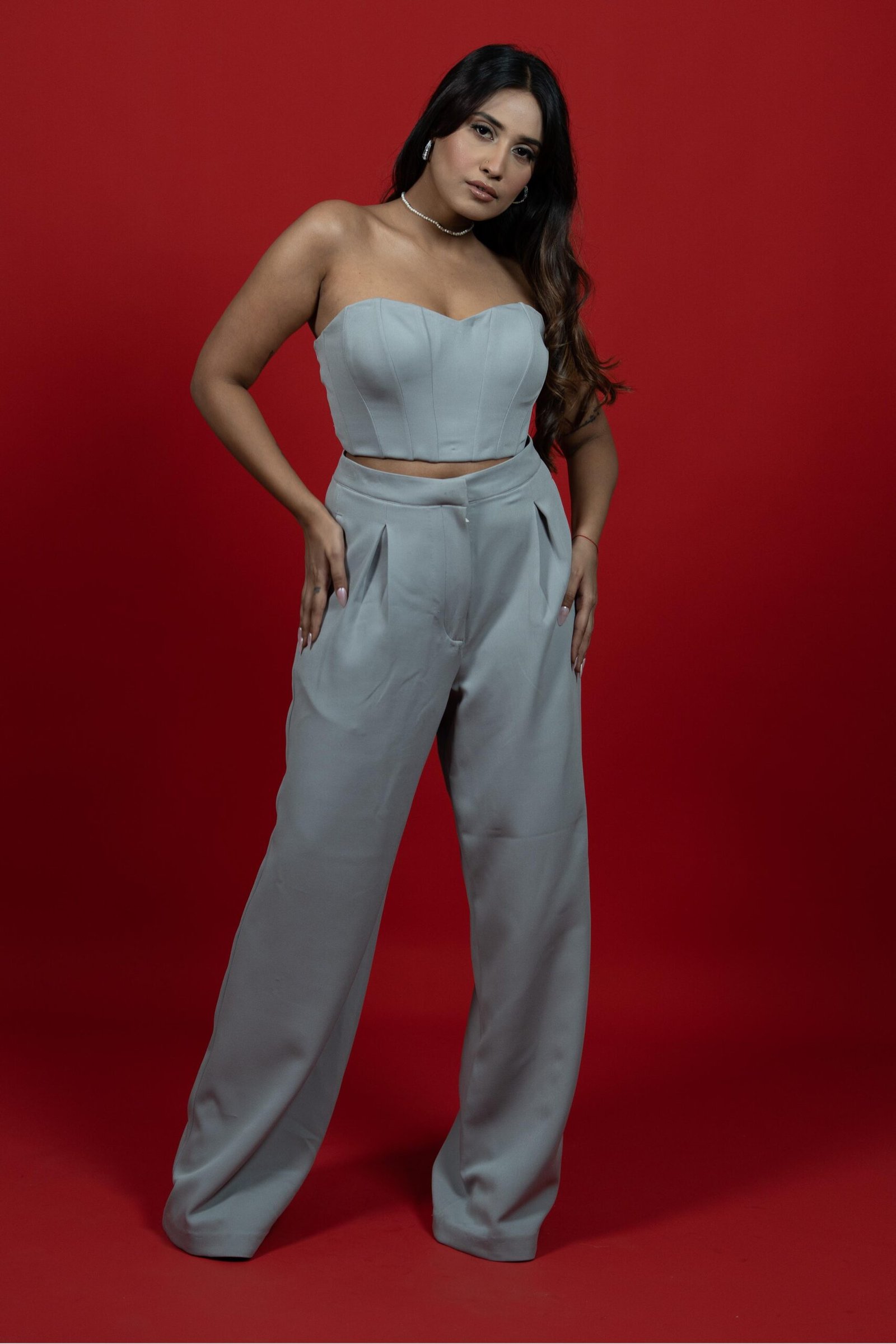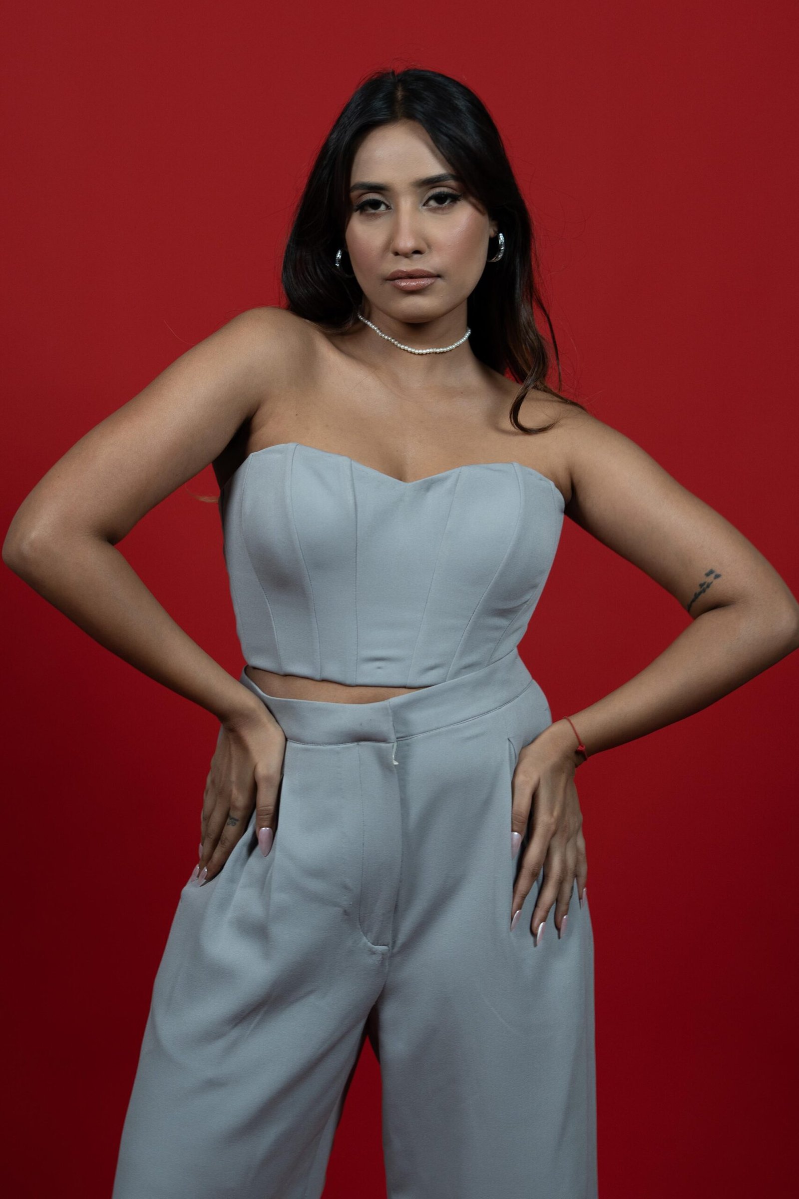 This structured crepe corset pairs with tailored pants and a statement cape, creating a bold silhouette that balances strength and sophistication. Fluid yet defined, it’s made for those who lead with presence—and dress like they mean it.
